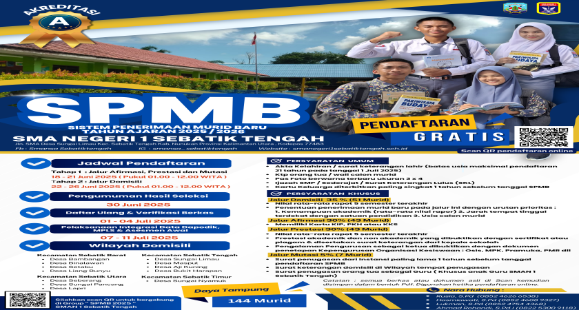 Sebatik Tengah, 27 Mei 2025 — Prestasi membanggakan kembali ditorehkan oleh siswa-siswi SMA Negeri 1 Sebatik Tengah. Empat siswa sekolah tersebut berhasil lolos dalam seleksi prop